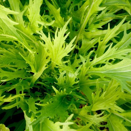 Мизуна е известна още като японска горчица, шуй кай (или „водни зеленчуци“). Благодарение на буйния си зелен цвят и хлорофила, който идва с него, мизуна е богата на витамини A, C и K, както и на бета каротин.