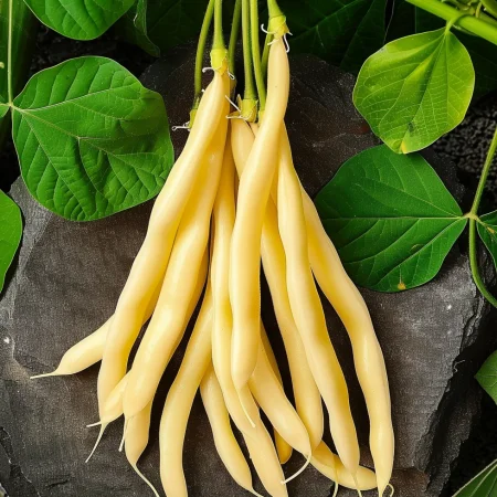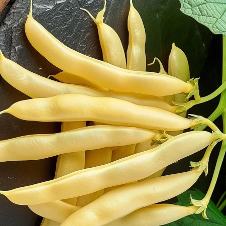 Нисък, средноранен сорт фасул с плоски жълти шушулки без конци и много добър вкус.