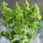 Действителните цъфтежи са малки и бели, предлагащи цялостен зелен вид. Възникват множество стъбла, предлагащи изобилие от цъфтежи на всяко растение.