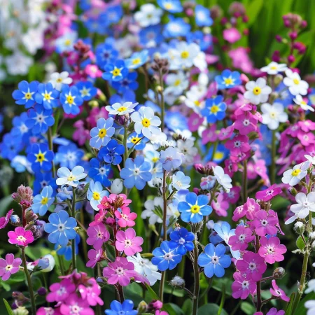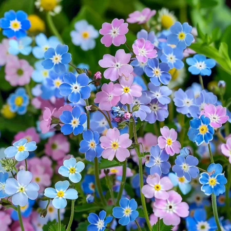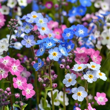 Тази избрана комбинация от незабравки включва сини, розови, бели и индигови нюанси.