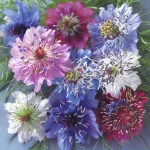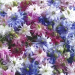 Нигела Персийски Бижута Микс включва най-красивите разновидности в чисто бяло, светло небесно синьо, синьо и розово.